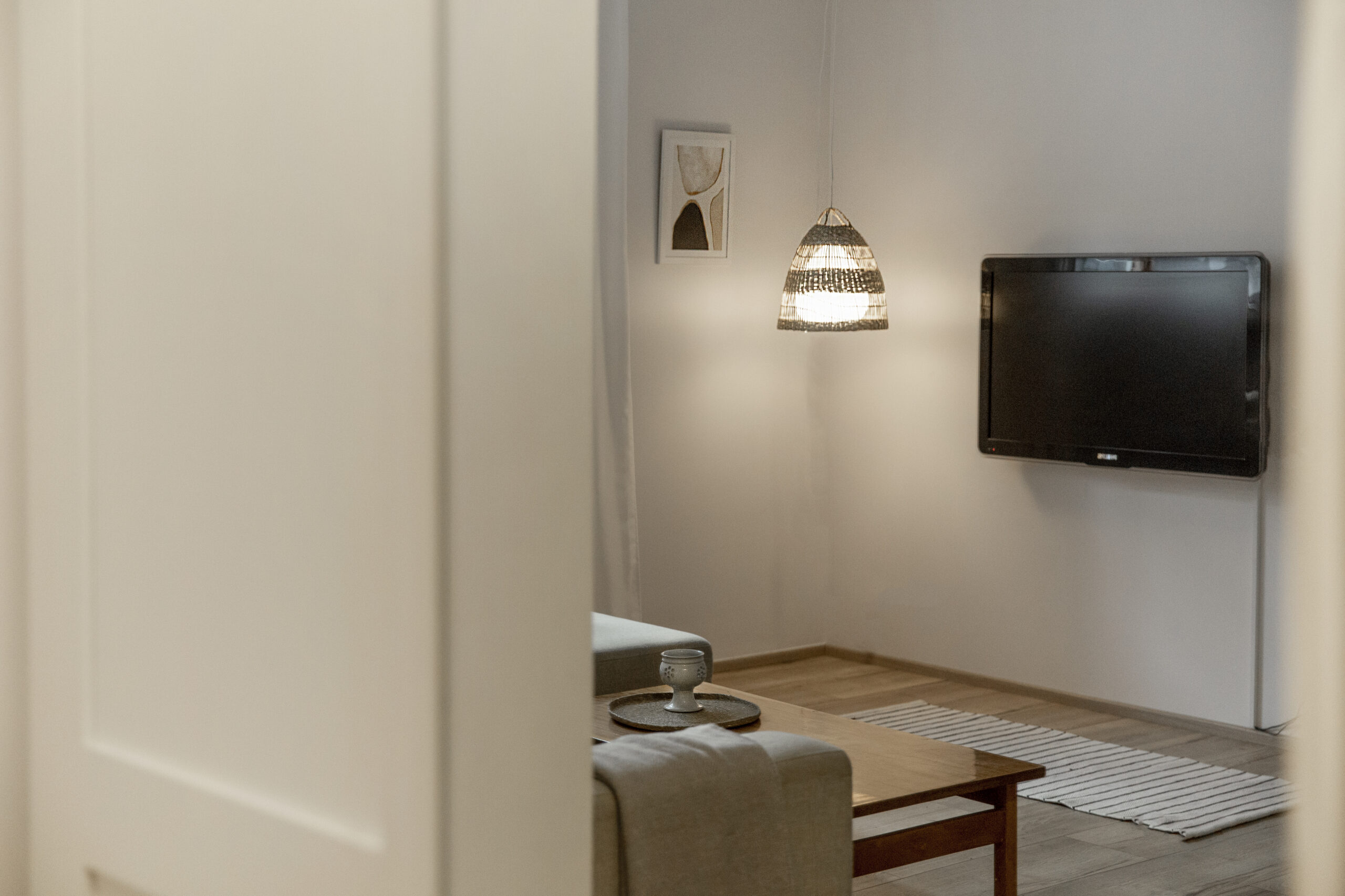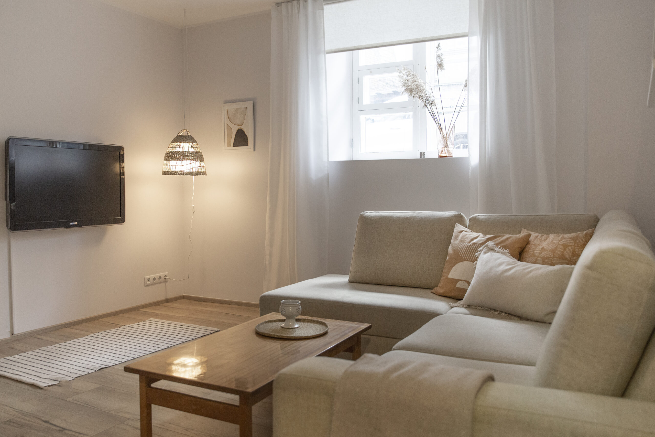 Hele ja maitsekas interjöör on kutsuv ja õdus, pakkudes samal ajal tänapäevaseid mugavusi. Täisvarustuses köök on varustatud kaasaegse kodutehnikaga (külmik, nõudepesumasin, pliit/ahi, pesumasin), lisaks on olemas sööginõud. Eraldipaiknevad elu- ning magamistuba võimaldavad mugavat kasutust ja piisavalt privaatsust ka kahekesi olles. Mugav diivan ning teler pakuvaid häid lõõgastumishetki ning kui väsimus võtab võimust, saad end rahulikult välja puhata 2-inimese voodis.